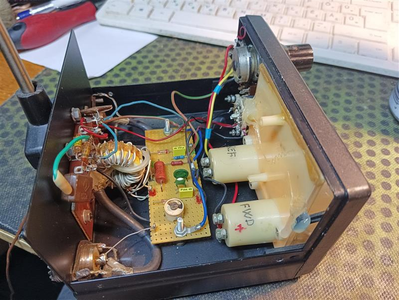 Valamelyik börzén vettem egy részben üzemképtelen kereszt-tekercses műszert. A belső szerkezetét felújítottam és átalakítottam. Jelenleg a rádióállomásom rendszerébe van bekapcsolva, adáskor ennek segítségével állítom be a meghajtást. Az előlapot új feliratokkal láttam el.